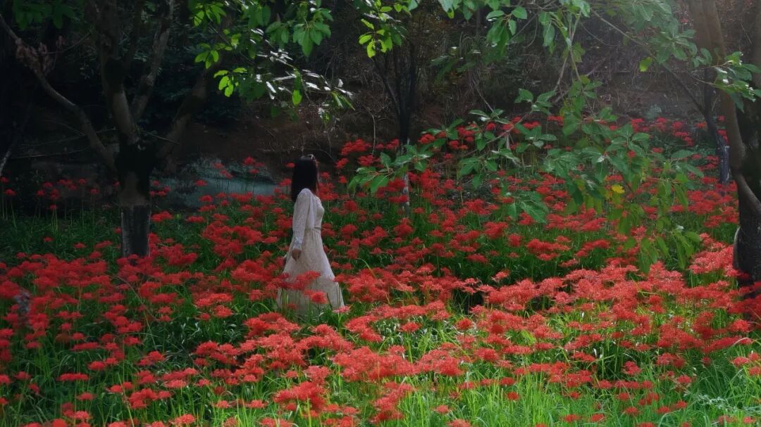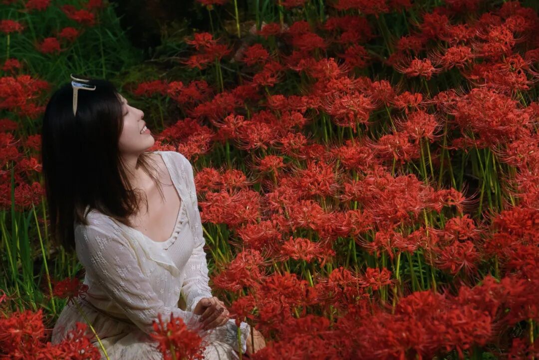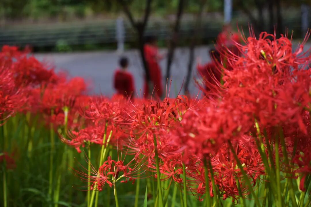 “彼岸花”娇艳,希望拍照打卡时请爱护花朵,勿踩踏、勿摘花